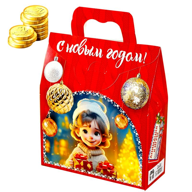 Сладкий новогодний подарок в картонной упаковке весом 550 грамм