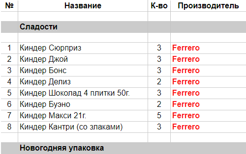 Опубликовано в Составы подарков